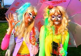 Tipos de Gyarus:♥ Ganguro: Ganguro (ガングロ), literalmente "rostro negro", es una tendencia de moda alternativa de pelo rubio o naranja y piel bronceada entre las jóvenes japonesas que tuvo su pico de popularidad alrededor del año 2000, pero continua siendo evidente hoy en día. El propósito es obtener el icónico look de las rubias bronceadas de California, EEUU. Los distritos de Shibuya e Ikebukuro de Tokio son los centros de la moda ganguro.♥Kogyaru:(高校生 'kōkōsei') generalmente una estudiante de instituto.♥ Mago gyaru:(中学校 chūgakkō) estudia en la secundaria.♥ Oyajigyaru: (オヤジギャル) viene de 'oyaji' and 'gyaru'. Se comporta y viste de un modo rudo y masculino.♥ Oneegyaru: (お姉ギャル) cuando ya ha salido del instituto, y pasa a ser una onee-san ("hermana mayor", en Japón usado como "señorita"). El estilo es más sofisticado.♥Ogyaru (汚ギャル): una gyaru que se abandona en su aseo y limpieza al vestir.♥Manba (マンバ): llevan un bronceado más profundo y maquillaje pálido como contraste y pelo teñido en rubios o tintes fantasía♥ kigurumin *: visten kigurumi, un tipo de pijama que las hace parecer animales o personajes de anime.♥ Bibinba (ビビンバ): este aspecto normalmente incluye un montón de joyería y abalorios.♥ Banba (バンバ): es una versión más ligera y alegre de las manba.♥ Himegyaru (姫ギャル): chicas que se visten de princesas. Peinados muy elaborados y ropas de diseñadores como Liz Lisa o Jesús Diamante.♥ Gyaru-kei (ギャル系): versión moderna del estilo gyaru. Hay muchos subtipos, como Amekaji(Desenfadado americano), Saike, Bohemio, Rokku(Rock), o Haady(una especie de punk-pastel).♥ Gyaruo (ギャル男): la versión masculina de una gyaru♥ Kyoba bo-i: la versión masculina de una banba. |